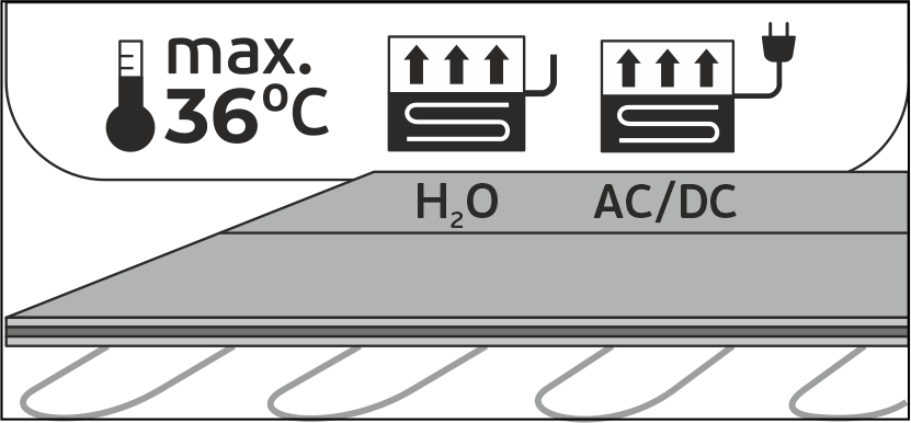 8.11 При использовании электрической системы тёплого пола мощность нагрева не должна превышать 150 Вт/м². При использовании водяной системы тёплого пола температура подачи теплоносителя не должна превышать +36°C.