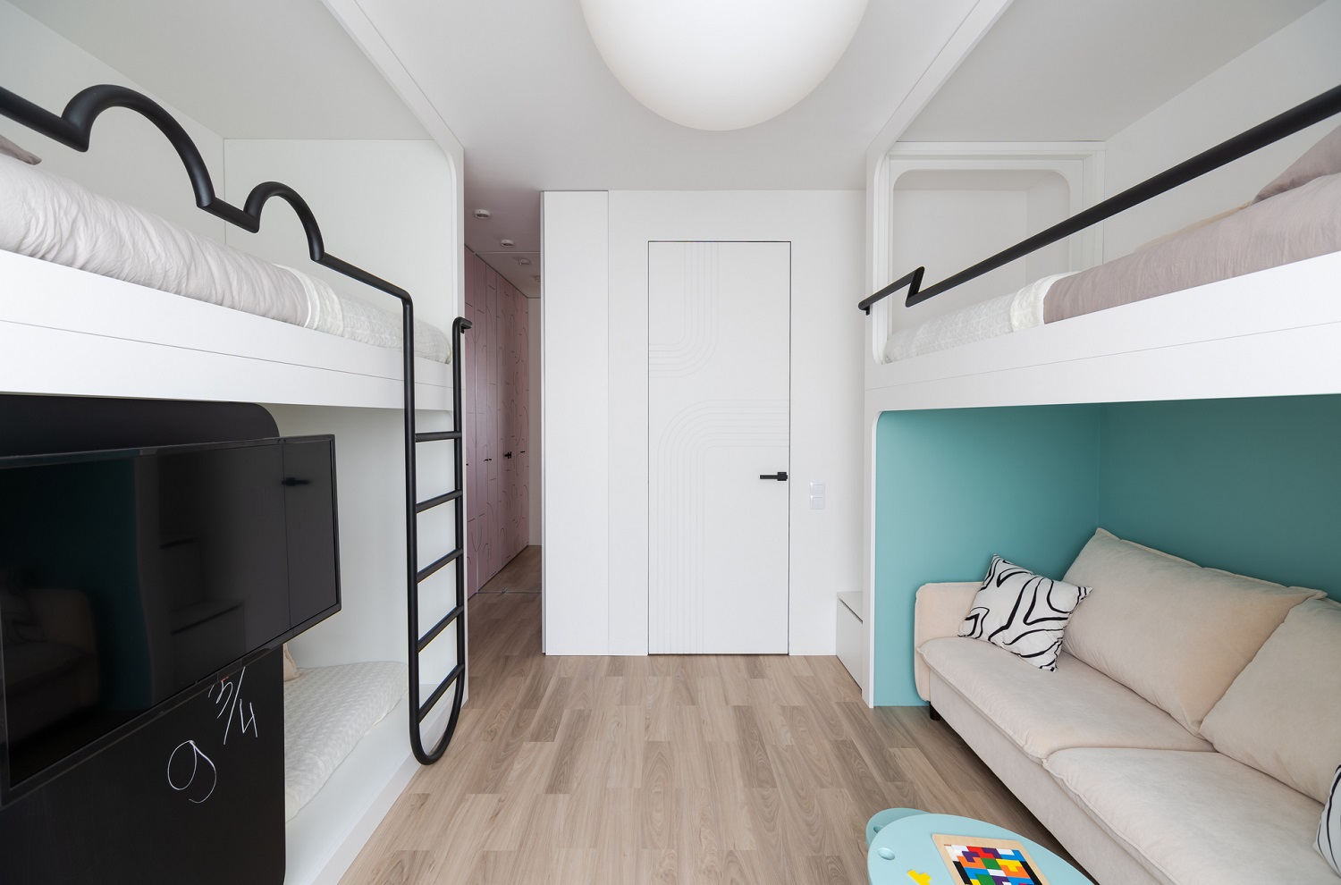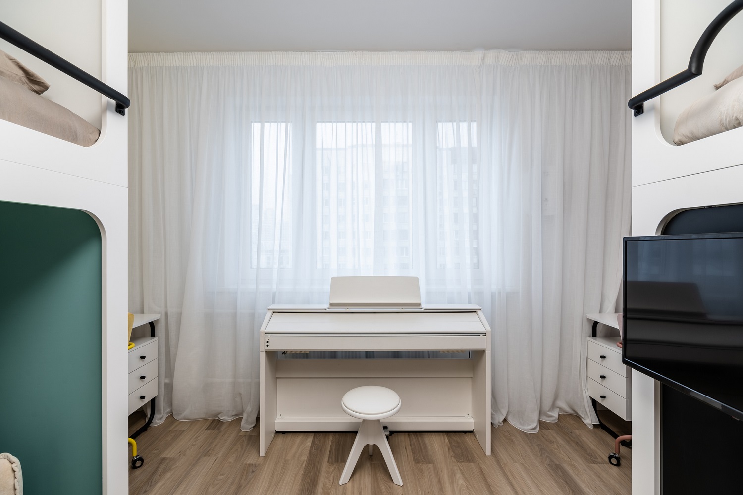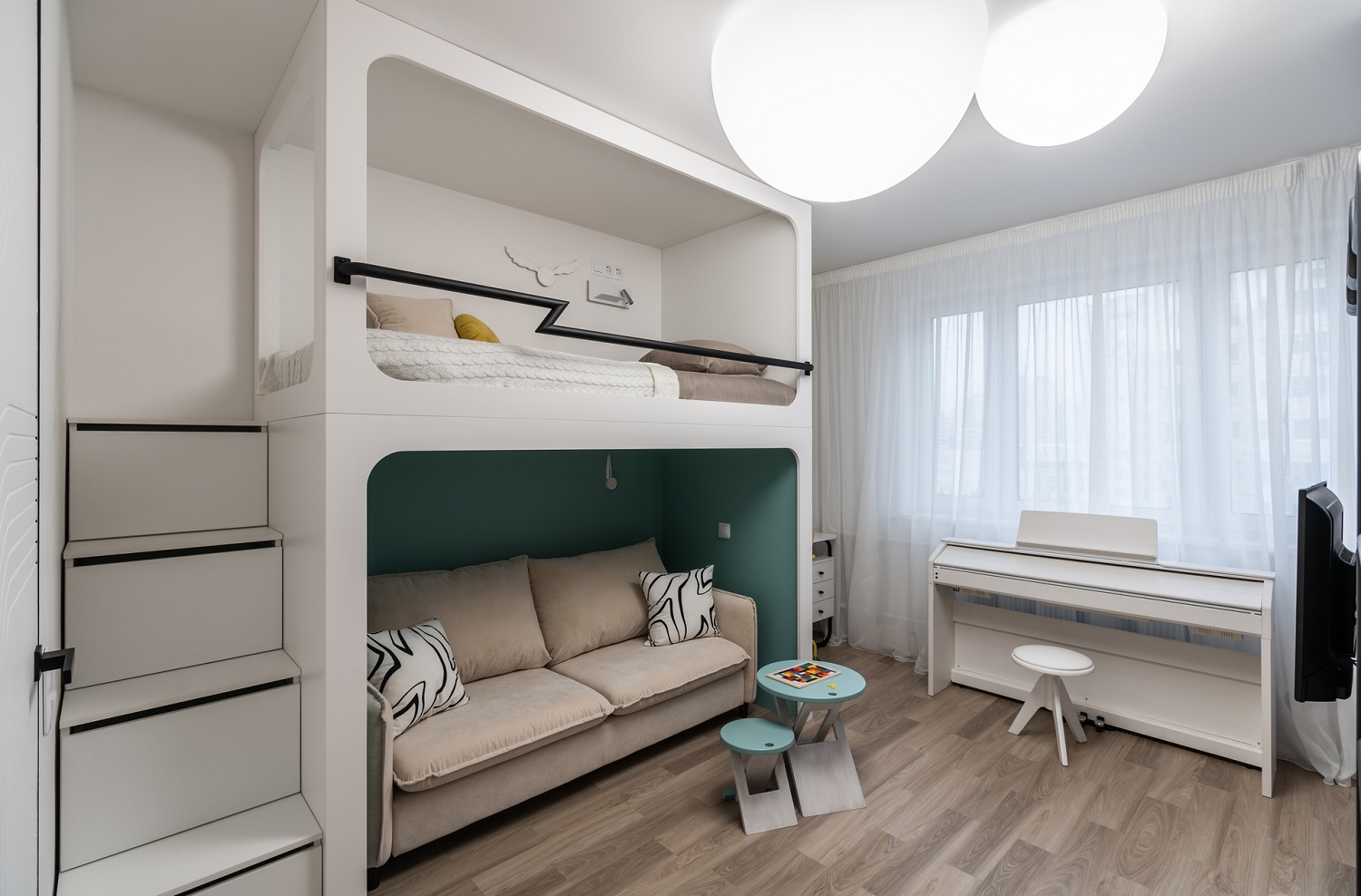 В детской применили интерьерную магию: разделили пространство на спальню, рабочую зону и гардеробную. Кстати, чулан, в котором жил Гарри Поттер, и знаменитые очки здесь тоже появились.